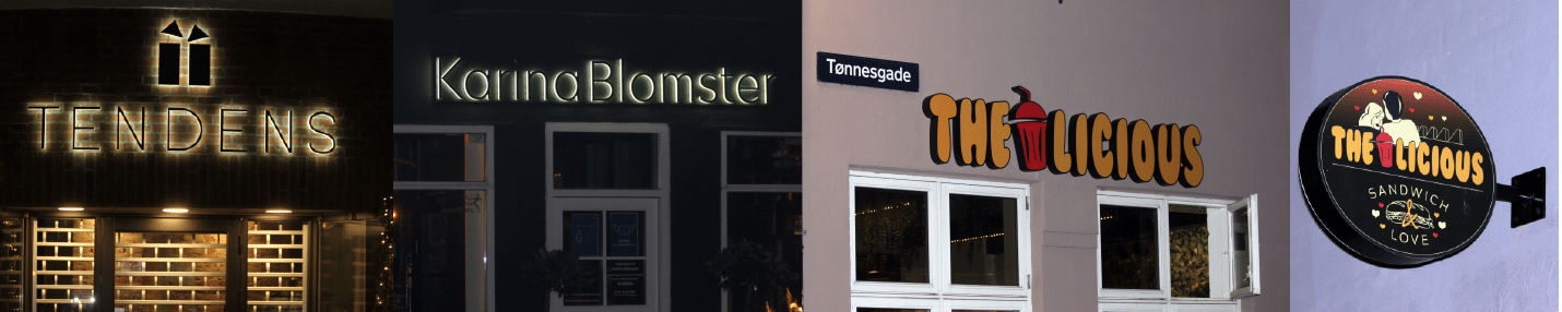 Vi tilbyder alt fra diskrete, elegante løsninger til store, opsigtsvækkende facadeskilte. Du kan vælge mellem frontbelyst, bagbelyst eller kombinerede effekter. Derudover tilbyder vi også energivenlige LED-løsninger, som er driftssikre og økonomiske i længden. -